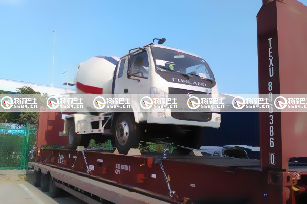 這輛混凝土攪拌車,體積龐大而且很重(尺寸:967CMX250CMX360CM,重量:15000KGS),正常情況下都是出運兩臺。根據這些數據我司給客戶安排了40英尺的平板柜,而且是一條龍服務,這讓客戶感到非常開心。