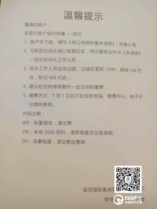 明天就要實施VGM集裝箱稱重新規,我們都知道鹽田國際集裝箱碼頭為保證操作的順暢,建議托運人事先簽訂過磅服務協議,但是目前很多貿易出口和貨代企業并沒有提前簽署碼頭稱重合約,這該怎么辦呢?物流巴士為便于廣大客戶臨時稱重的需求,現將鹽田碼頭發布的關于“非簽約客戶臨時稱重“的指引告知大家。