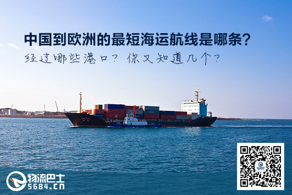 中國到歐洲的最短的海運航線是亞歐航線,途經(中國)->南海->馬六甲海峽->孟加拉灣->印度洋->阿拉伯害->曼德海峽->紅海->蘇伊士運河->地中海->直布羅陀海峽->北大西洋->(歐洲)。經過比雷埃夫斯港、布達佩斯港。
